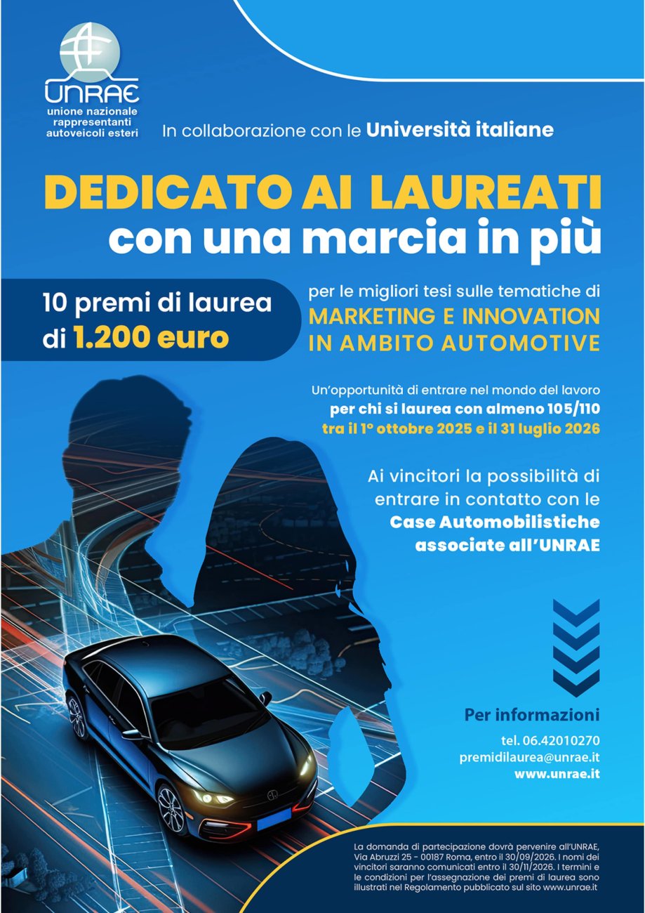 Premi di laurea UNRAE 2026 alle migliori tesi in marketing e innovation in ambito automotive